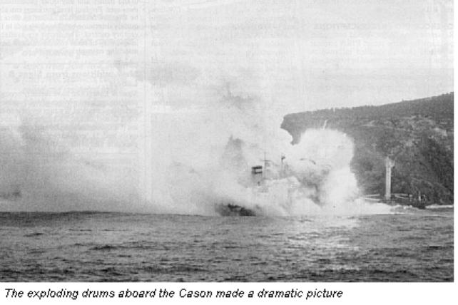 The Spanish authorities felt vindicated that their persistent efforts to remove Cason's cargo over a long period helped to minimize what could have been a major case of marine pollution. At one stage, both the hull and P&I insurers of the cargo advised the Spanish government against struggling on with salvage operations during the long winter months. They argued that once the sodium fires were out, it would have been better to leave the wreck until the spring at which time clean-up operations could have proceeded much more quickly and at less cost.