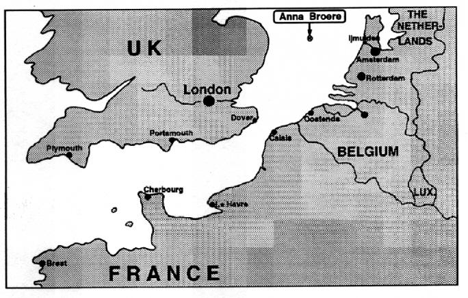 The Dutch tanker "Anna Broere", of 1500 grt, on her way from Rotterdam to England, collided with the Swedish container ship Atlantic Compass on Friday, May 27 1988, The Anna Broere sank due to the damage sustained to the hull at the starboard side, 60 miles west of Ijmuiden, the Netherlands (Figure 1).