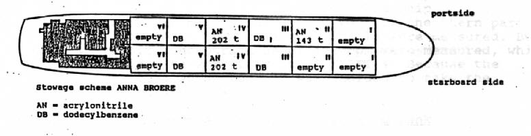 The Anna Broere carried 547 tons of acrylonitrile and 500 tons of dodecylbenzene (a linear alkyl benzene).
